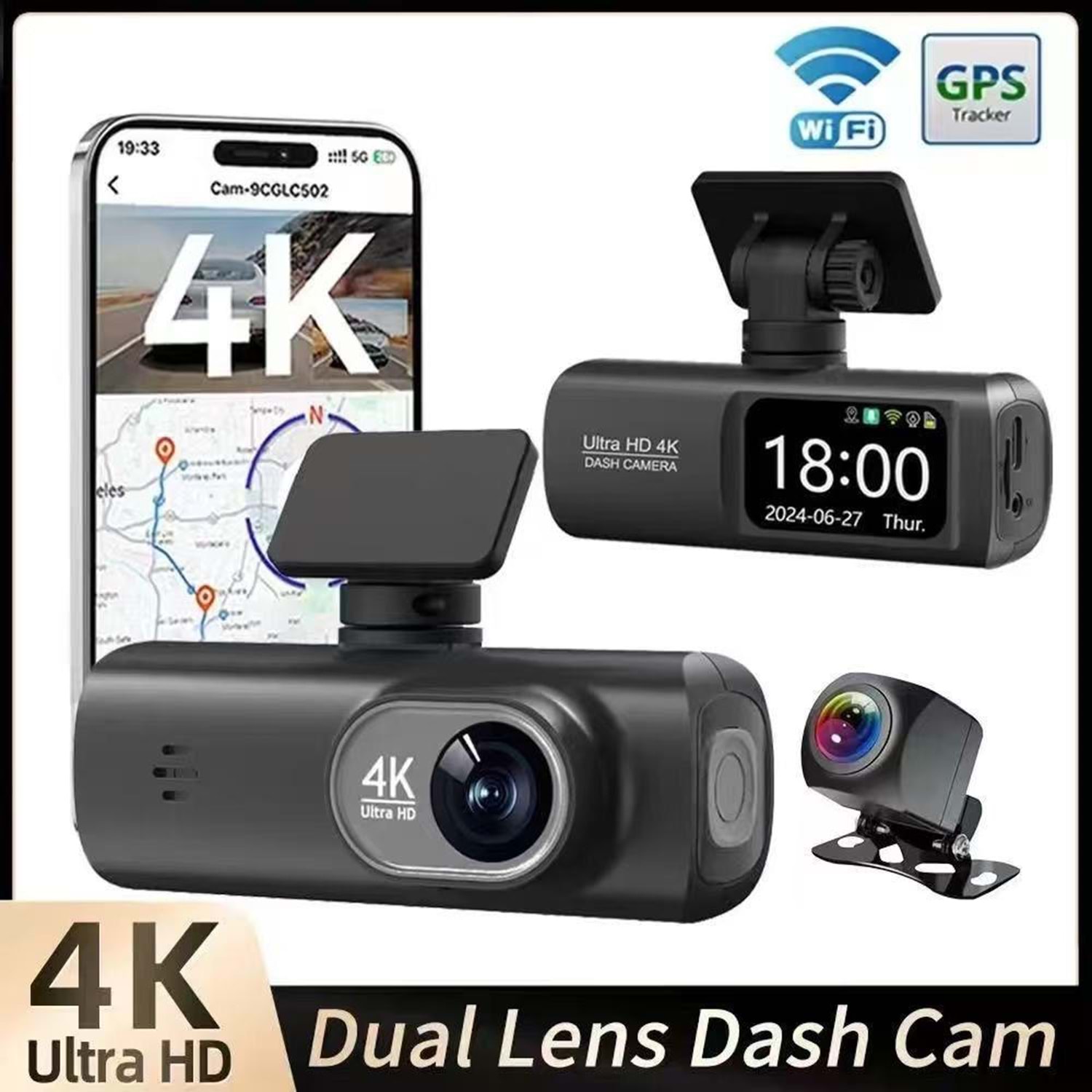 PELL V26C 2 Kameralı 4K Araç Kamerası Wifi GPS